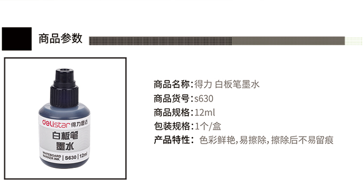 商品名称:得力(deli) 可加墨白板笔补充用墨水S630 12ml红色