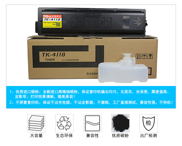 商品名称:科思特 TK-4118(带芯片) 粉盒 适用京瓷Taskalfa 2200/2201 黑色