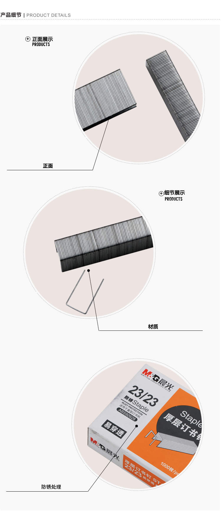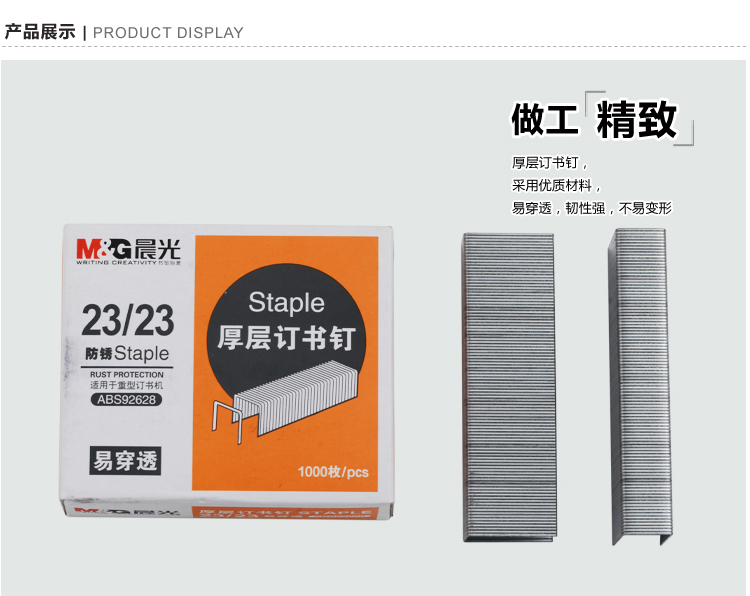 商品名称:晨光23/23*5盒厚层订书钉ABS92628
