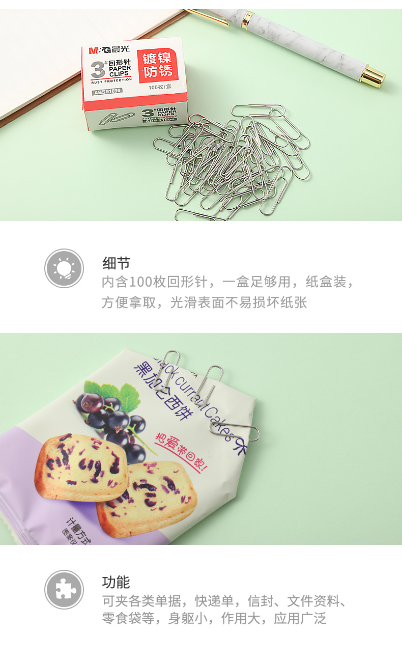 商品名称:晨光办公用3号*10盒金属回形针纸盒装ABS91696