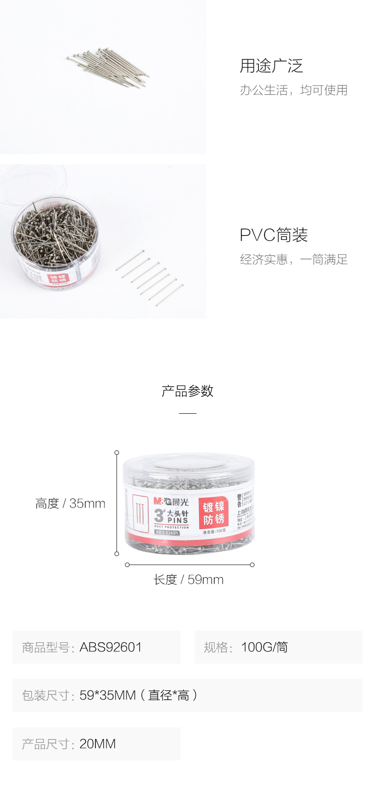 商品名称:晨光办公用3号大头针PVC筒装 ABS92601