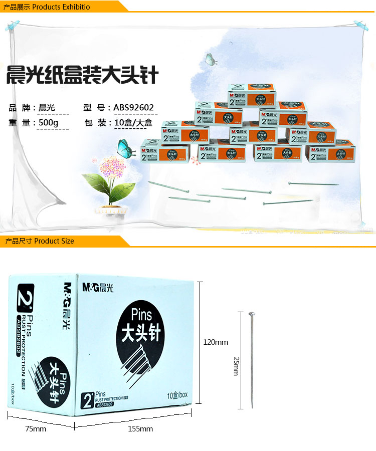 商品名称:晨光办公用2号大头针纸盒装*10盒ABS92602