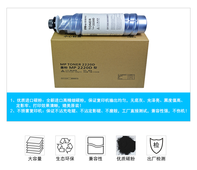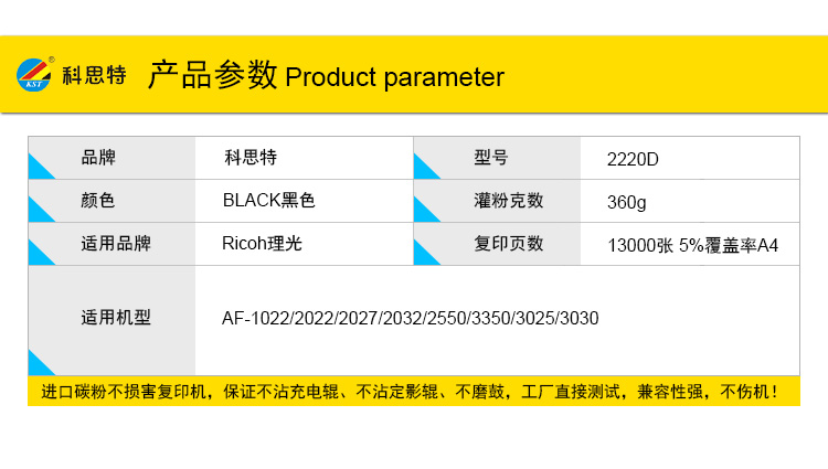 商品名称:科思特 MP2220D 粉盒 适用理光AF-1022/2022/2027/2032/2550/3350/3025/3030/2553/2851/3351 黑色