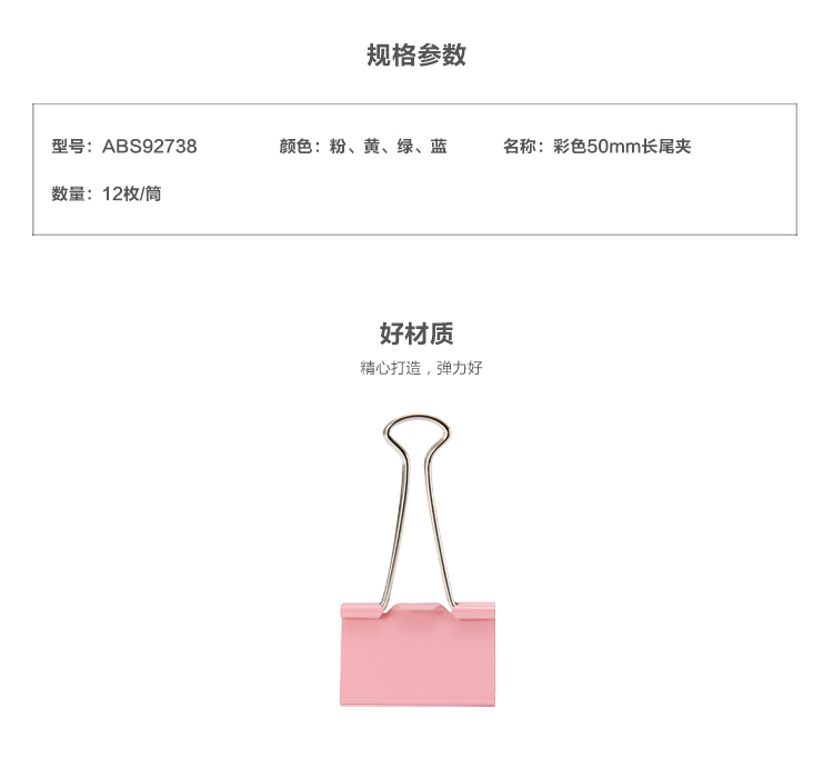 商品名称:晨光Eplus彩色长尾夹50mm(筒装)ABS92738