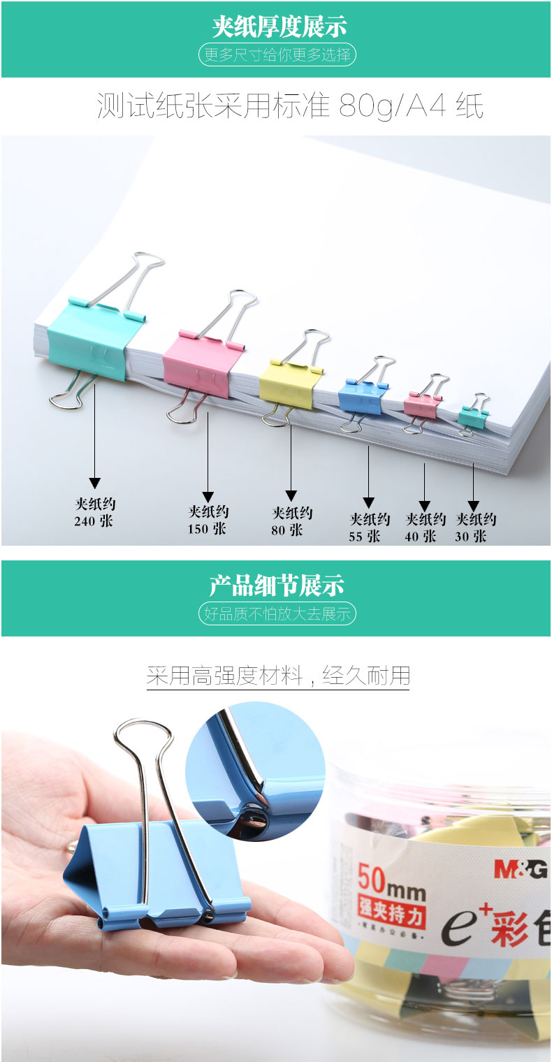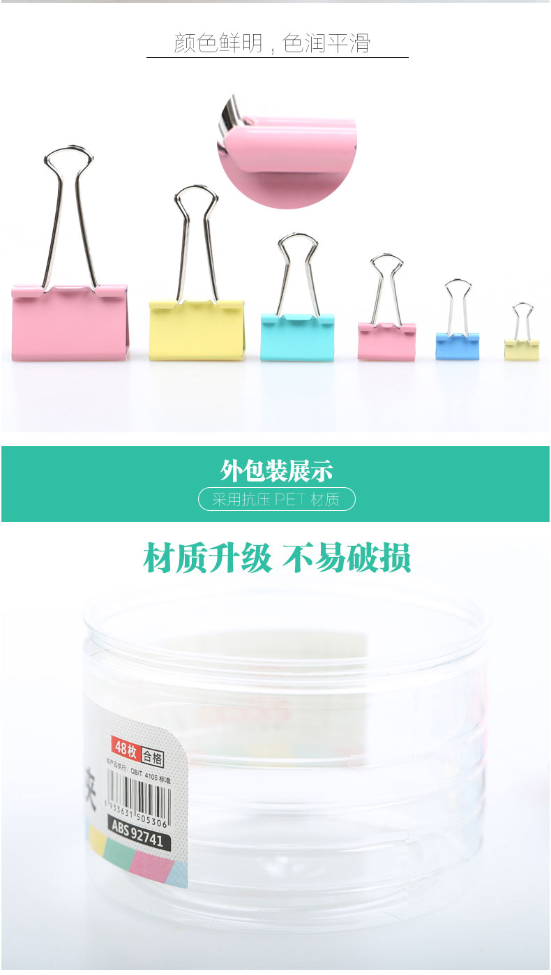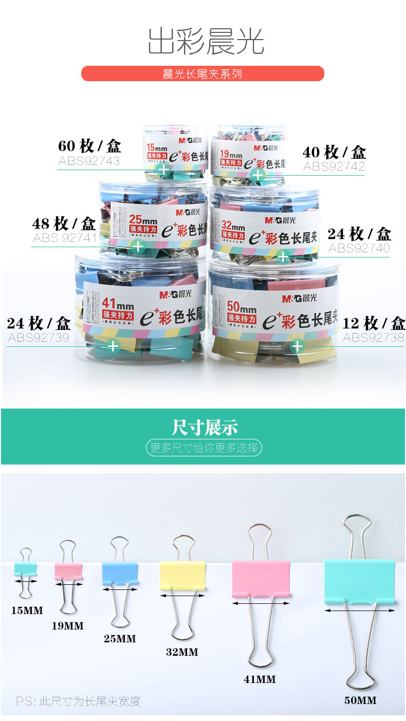 商品名称:晨光Eplus彩色长尾夹41mm(筒装)ABS92739
