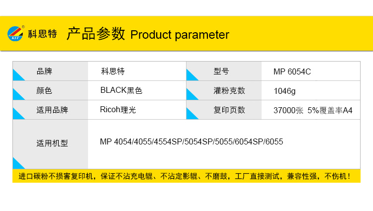 商品名称:科思特 MP6054C/5505C 粉盒 适用理光 MP 4054/4054SP/5054/5054SP/6054/6054SP 黑色