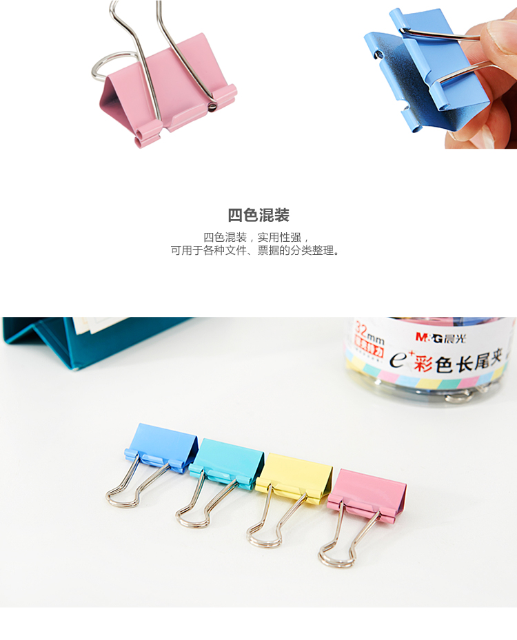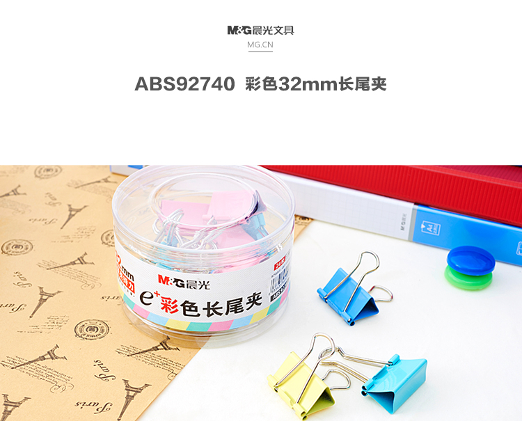 商品名称:晨光Eplus彩色长尾夹32mm(筒装)ABS92740