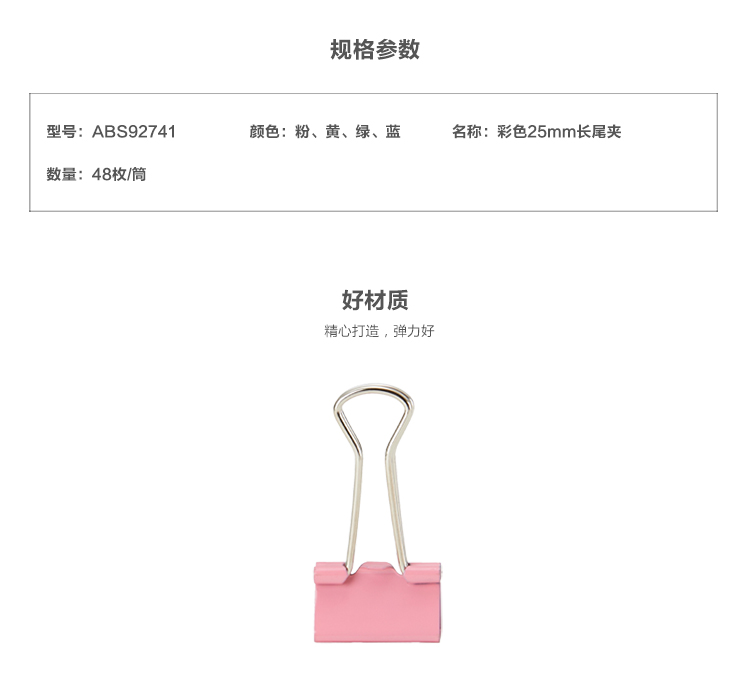 商品名称:晨光Eplus彩色长尾夹25mm(筒装)ABS92741