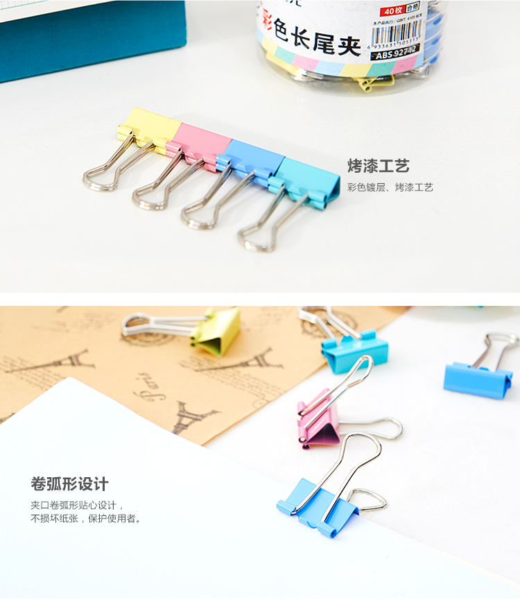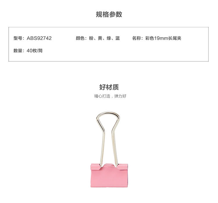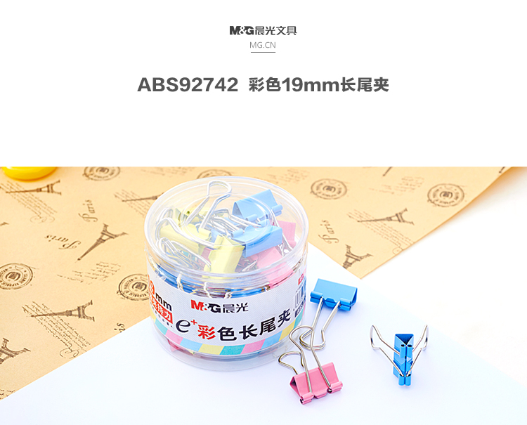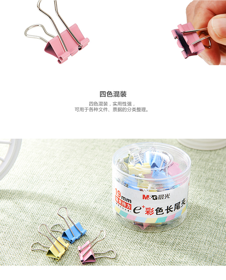 商品名称:晨光Eplus彩色长尾夹19mm(筒装)ABS92742