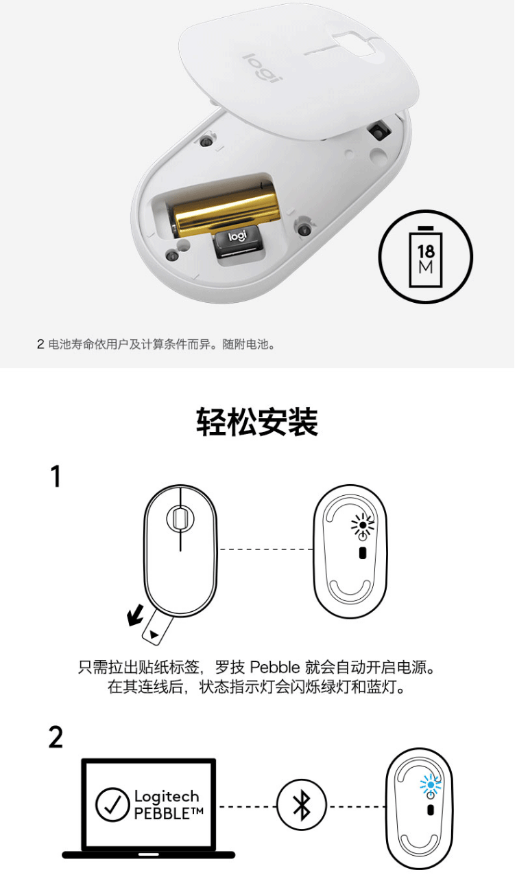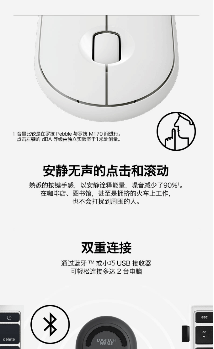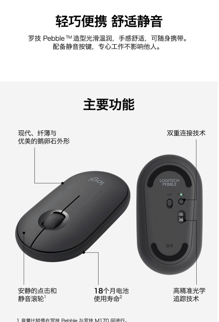 商品名称:罗技(Logitech)Pebble 鹅卵石超薄便携 无线静音鼠标 蓝牙鼠标 石墨黑