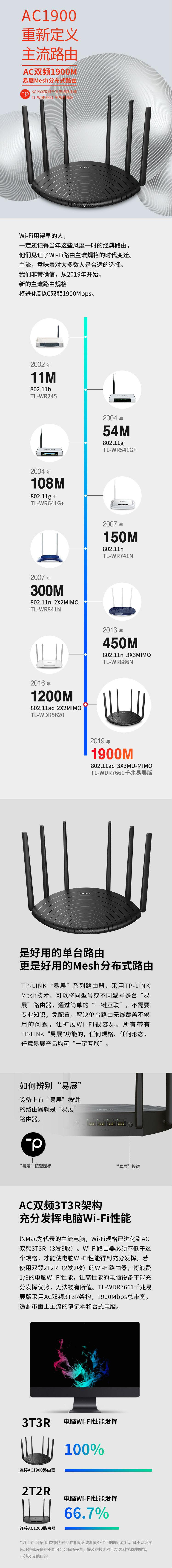 商品名称:TP-LINK 双千兆路由器 1900M无线 六信号放大器 5G双频 WDR7661千兆易展 IPv6