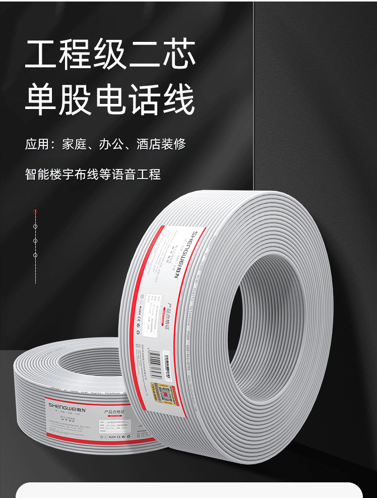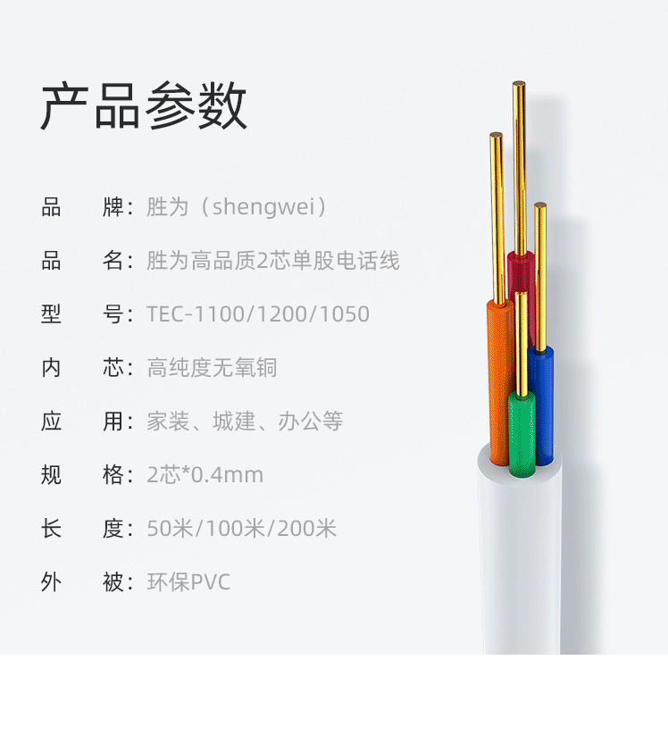 商品名称:胜为(shengwei)电话线2芯单股无氧铜线芯0.4mm座机/传真机电话延长线连接线200米 TEC-1200