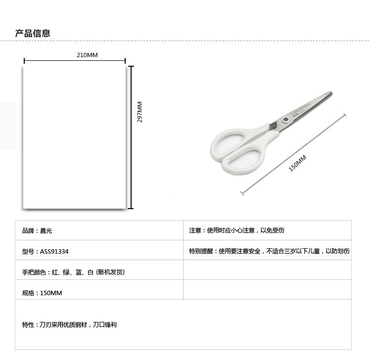 商品名称:晨光150mm剪刀办公12把颜色随机ASS91334