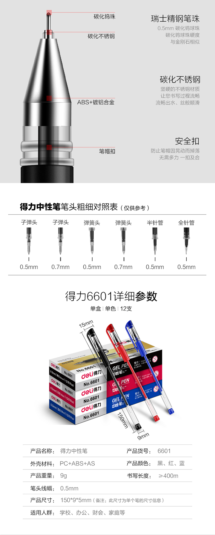 书写粗细:0.5mm