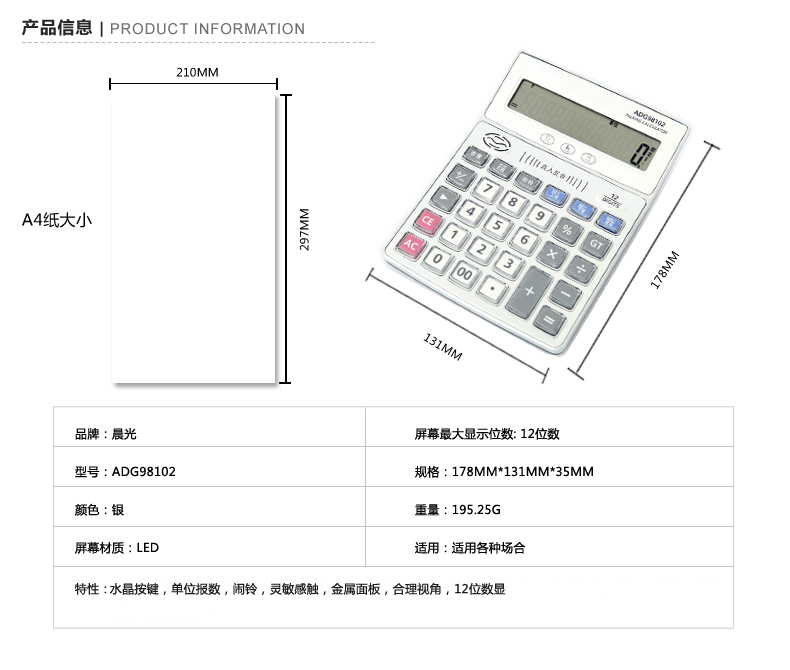 商品名称:晨光计算器语音型ADG98102