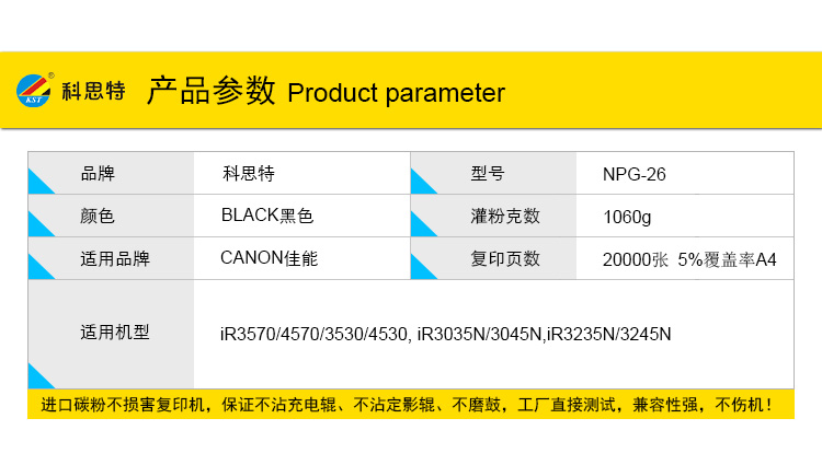 商品名称:科思特 NPG-26 粉盒 适用佳能 iR3570/4570/3530/4530, iR3035N/3045N,iR3235N/3245N 黑色
