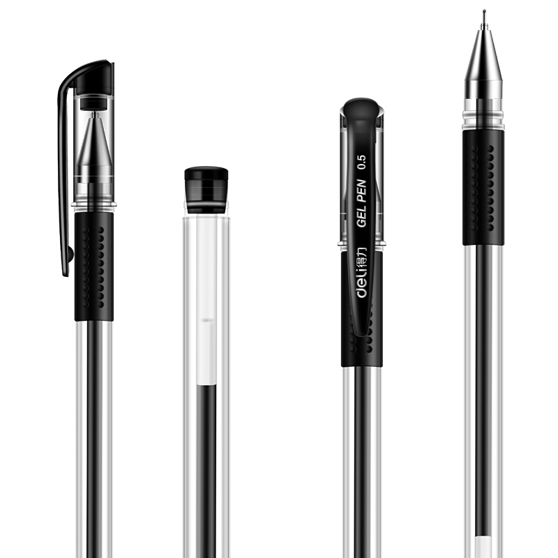 得力(deli)6601半针管中性笔 0.5mm签字水笔 黑色 12支/盒