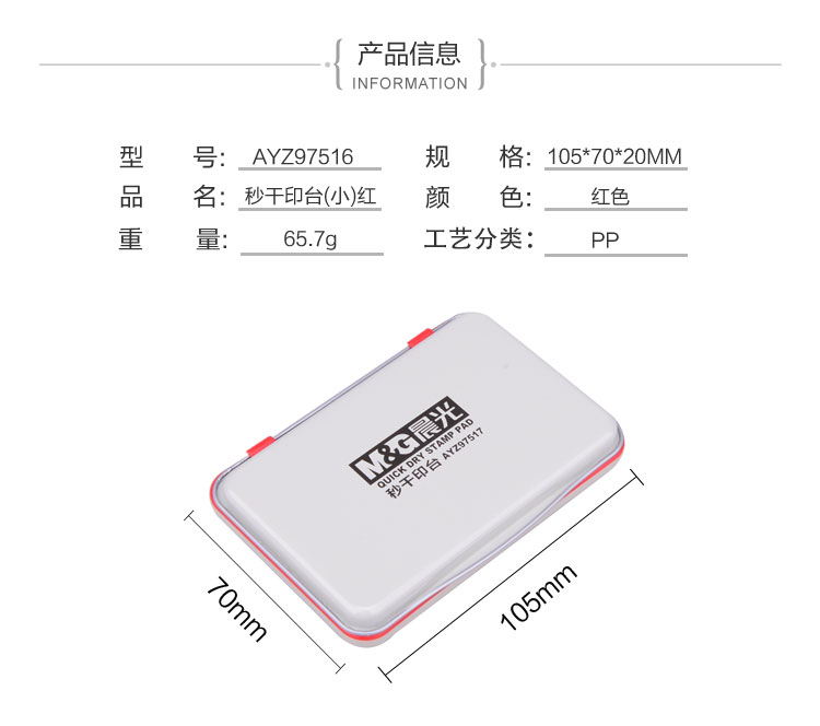 商品名称:晨光秒干印台(小)红AYZ97516A