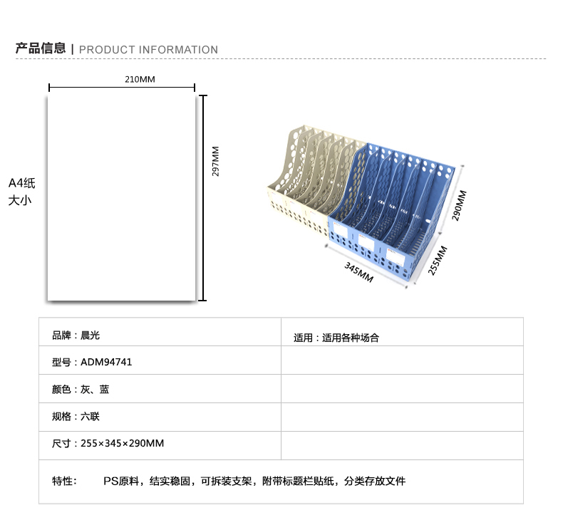 商品名称:晨光六联文件框(蓝)ADM94741B