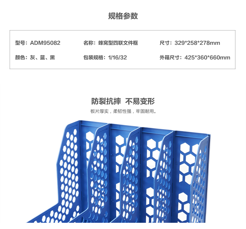 商品名称:晨光蜂窝形三联文件框(蓝色)ADM95081
