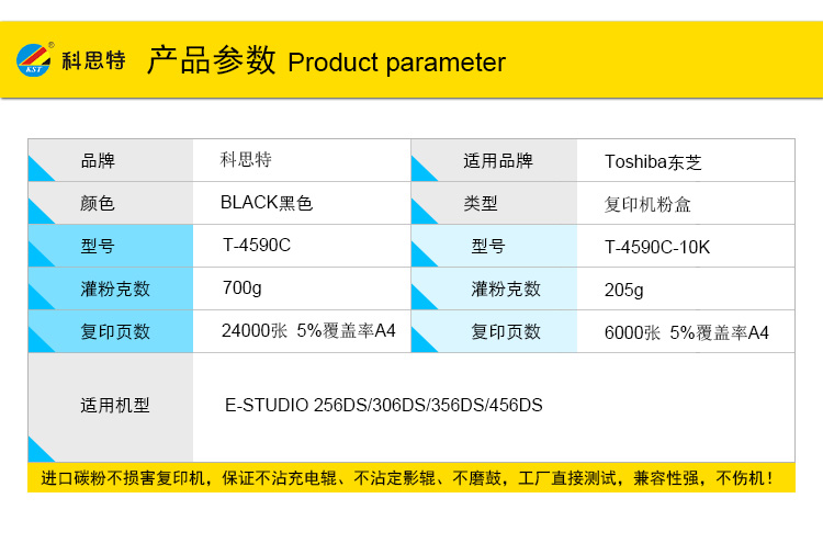 商品名称:科思特 T-4590C(带芯片) 粉盒 适用东芝 E-STUDIO 256DS/306DS/356DS/456DS 黑色