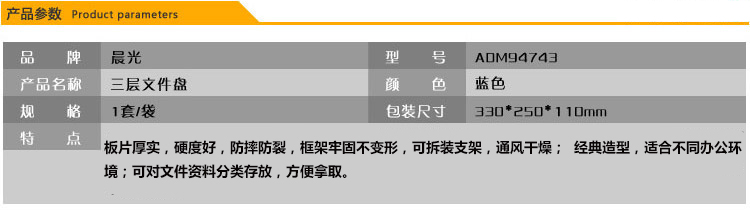 商品名称:晨光三层文件盘(蓝)ADM94743B