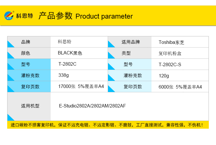 商品名称:科思特 T-2802C(升级版)(带芯片) 粉盒 适用东芝 E-Studio2802A/2802AM/2802AF 黑色