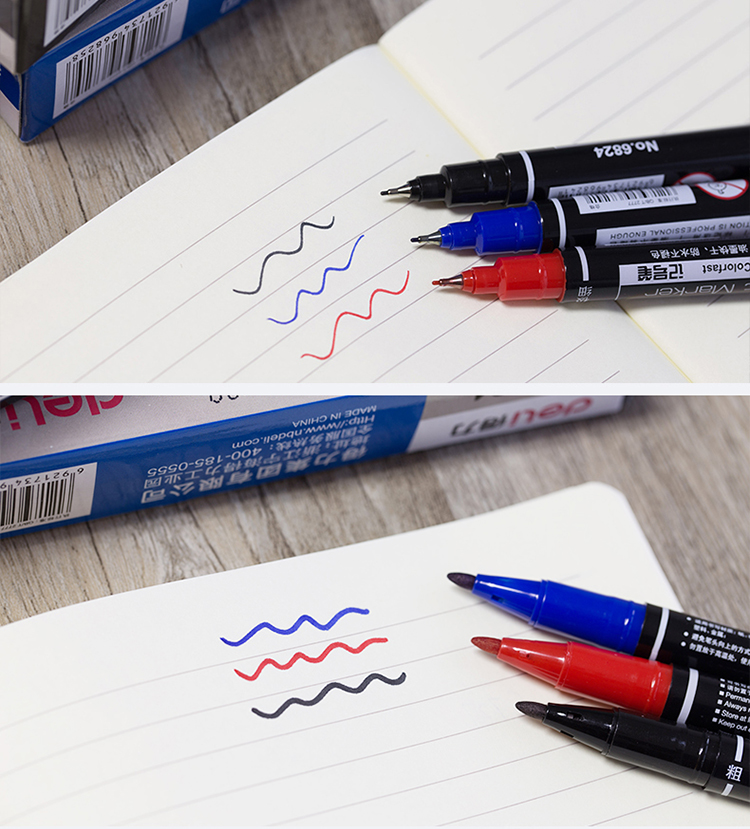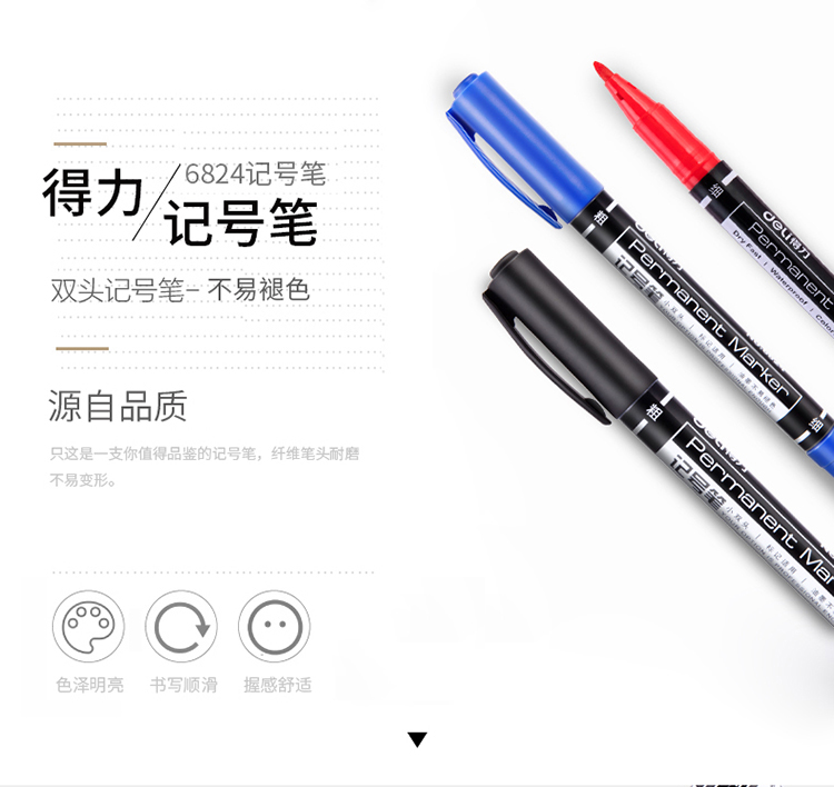 商品名称:得力思达6824小双头记号笔 蓝色 12支/盒