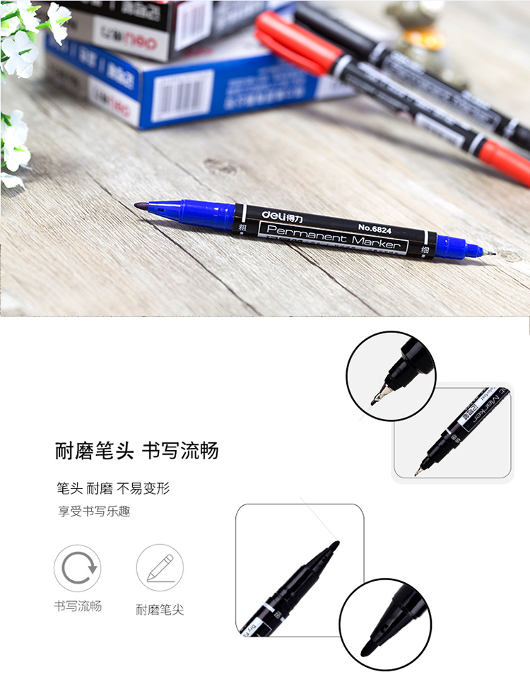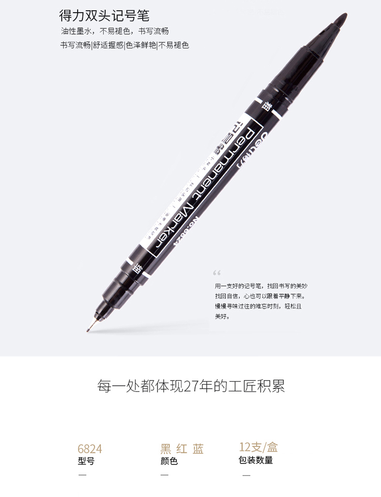 商品名称:得力思达6824小双头记号笔 黑色 12支/盒