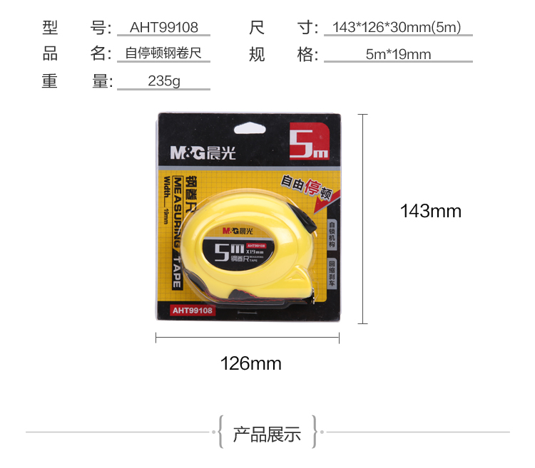 商品名称:晨光自停顿5m钢卷尺AHT99108