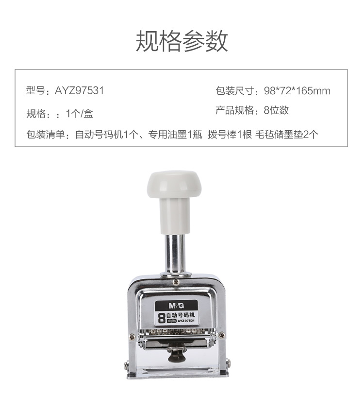 商品名称:晨光8位自动号码机AYZ97531