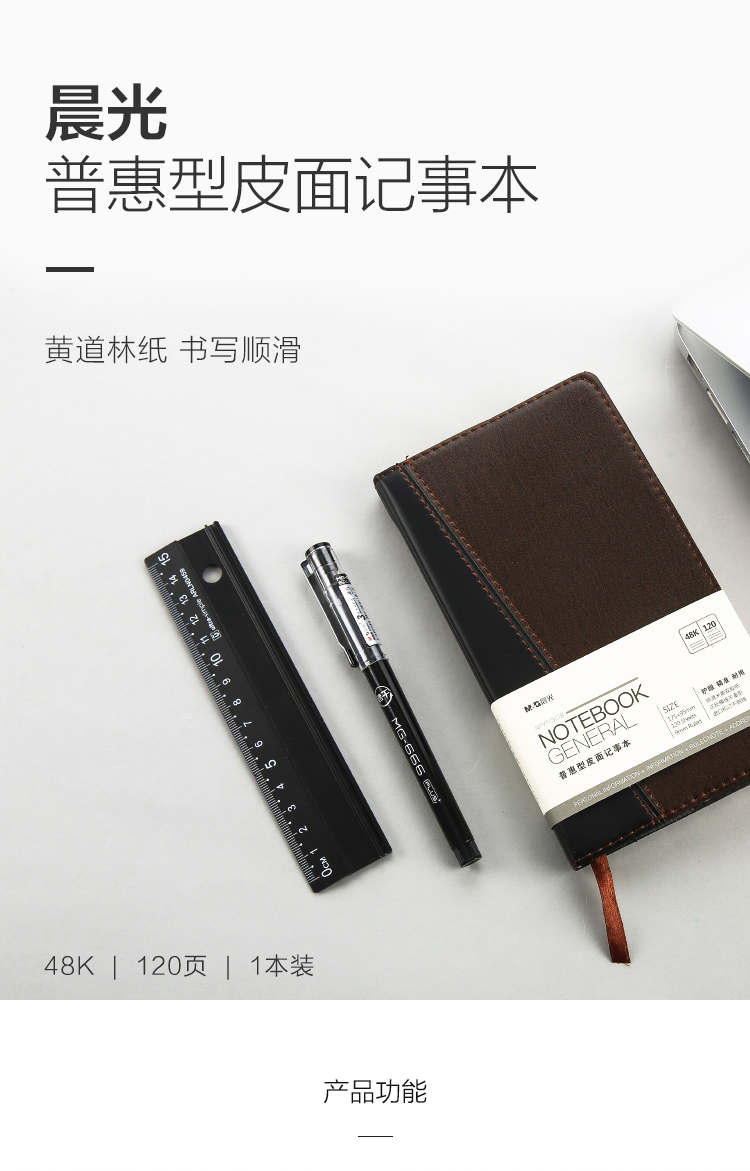 商品名称:晨光48k普惠皮面记事本120页黑APY1CK78A