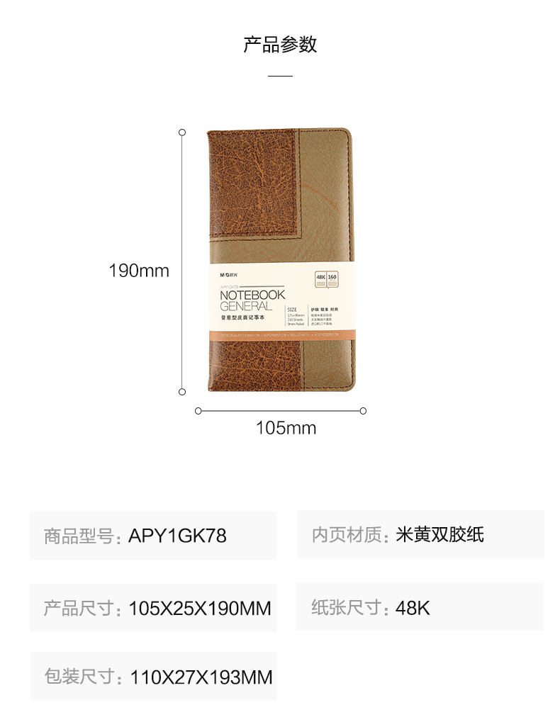 商品名称:晨光48k普惠皮面记事本160页APY1GK78