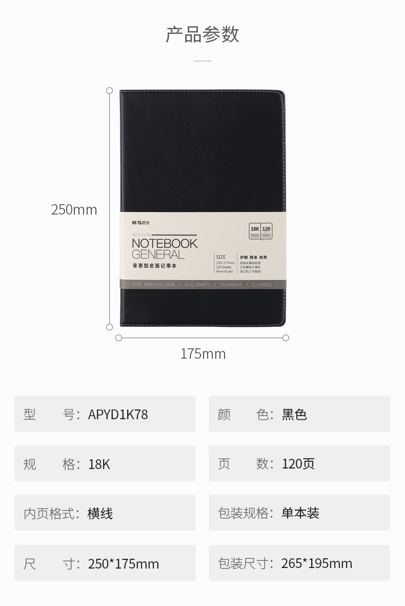 商品名称:晨光18k普惠皮面记事本120页黑APYD1K78A