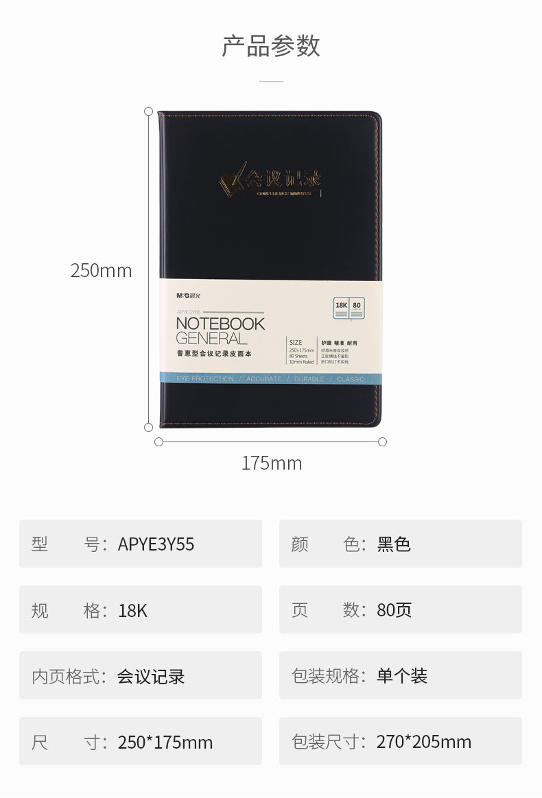 商品名称:晨光普惠型会议记录皮本18K80页黑APYE3Y55