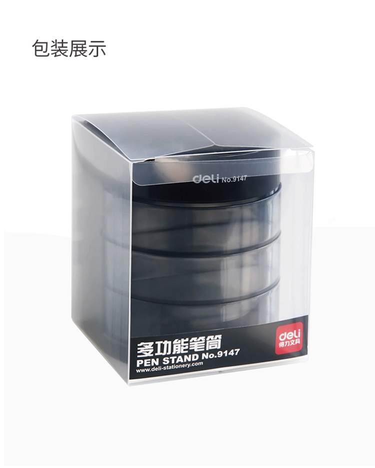 商品名称:得力9147笔筒 三层多功能笔筒 塑料笔筒 黑色