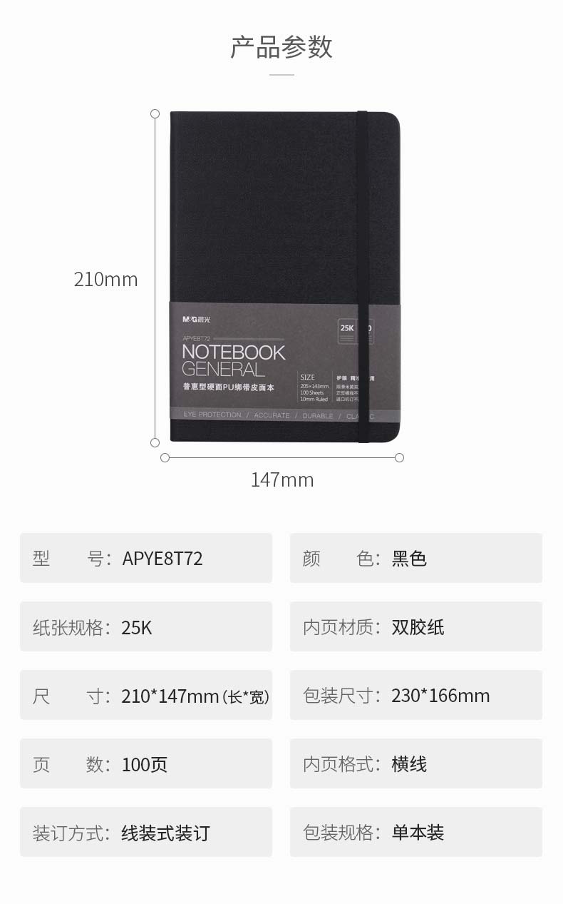 商品名称:晨光25k普惠PU绑带硬面本100页APYE8T72