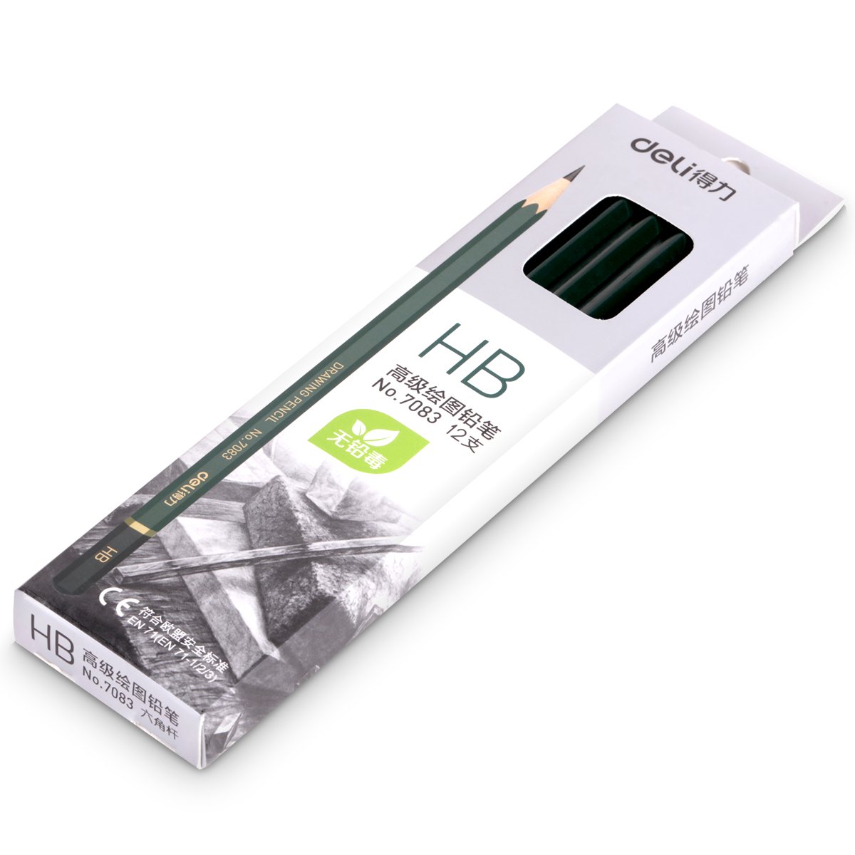 得力7083铅笔 HB铅笔 木质绘图铅笔 12支/盒