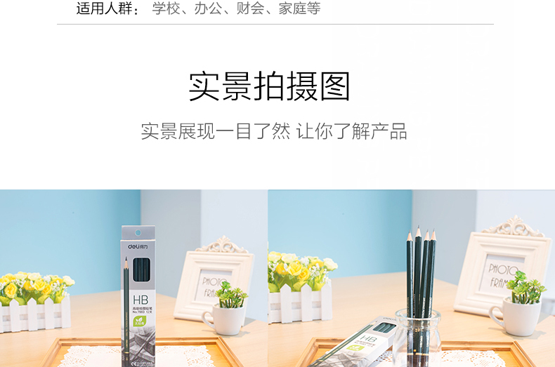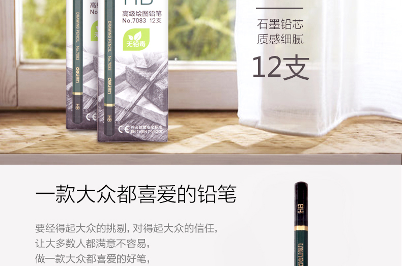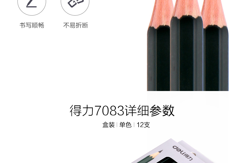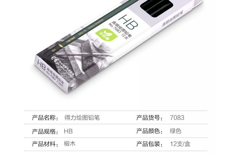 商品名称:得力7083铅笔 HB铅笔 木质绘图铅笔 12支/盒