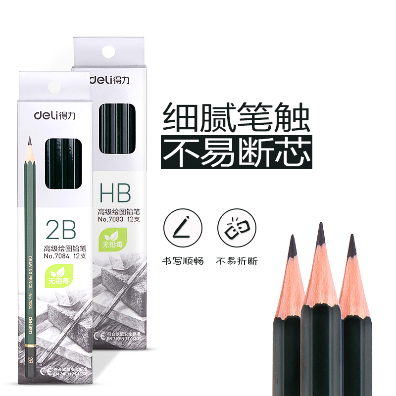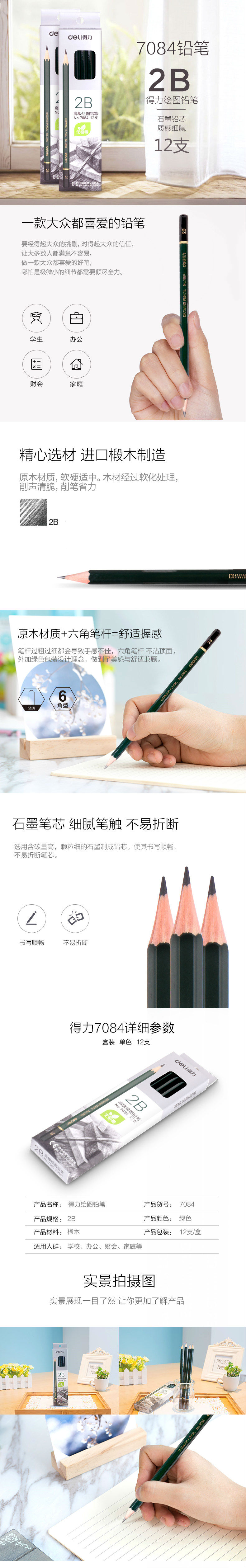 商品名称:得力7084绘图铅笔 2B木质铅笔 涂答题卡铅笔 12支/盒