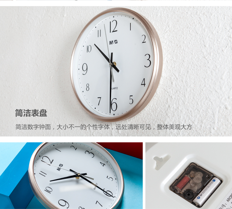 晨光经典圆形挂钟11英寸金色ARCN8251