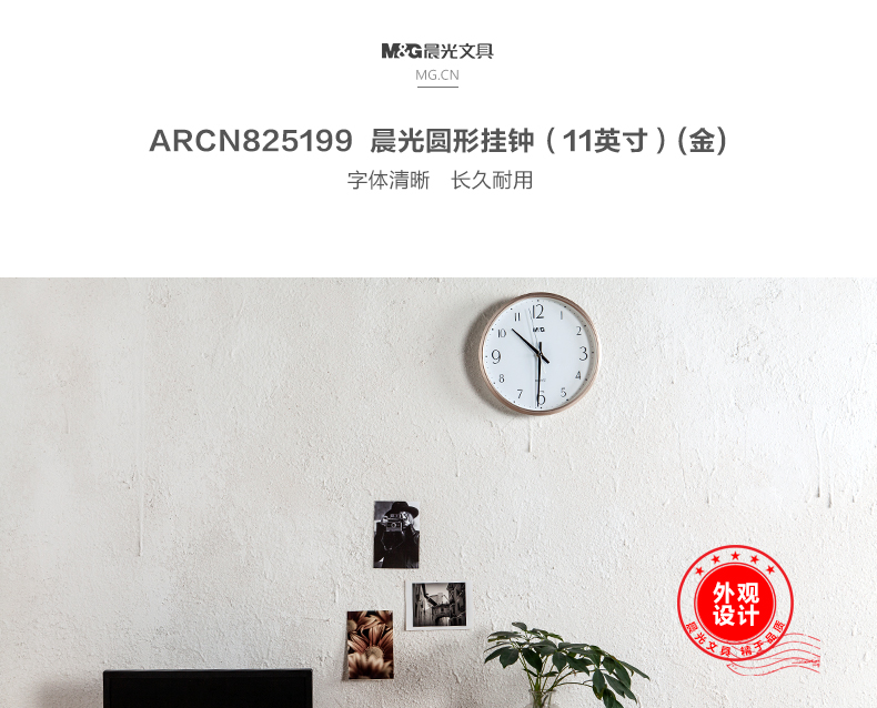 商品名称:晨光经典11英寸圆形挂钟白色ARCN8251