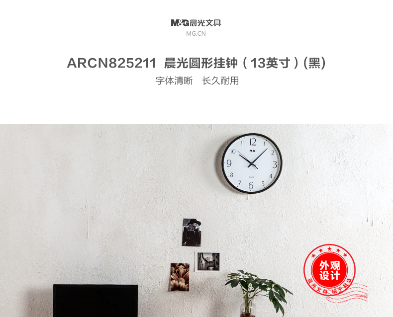商品名称:晨光经典圆形挂钟13英寸金色ARCN8252