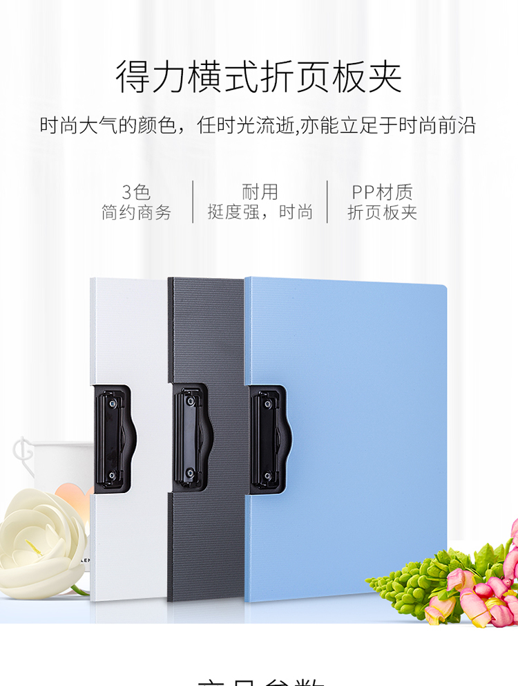商品名称:得力5011横式折页板夹 账单夹板 文件夹 资料夹 菜单夹 白色