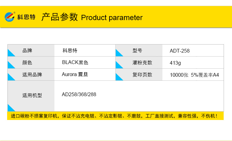 商品名称:科思特 ADT-258 粉盒 适用震旦 AD258/368/288 黑色