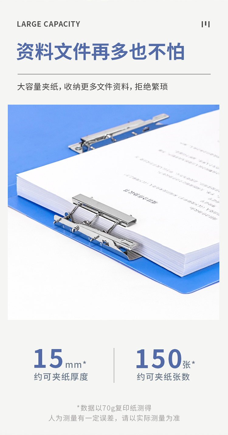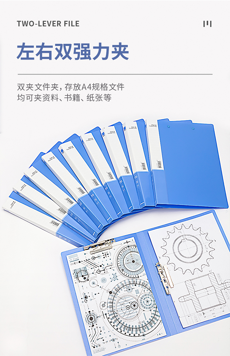 商品名称:得力(deli) 5302金属双强力夹 A4硬文件夹 蓝色 (单位:个)