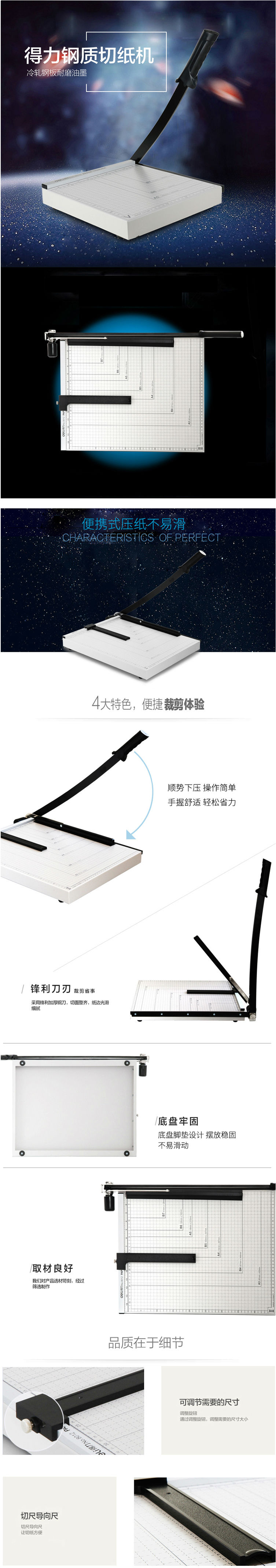 商品名称:得力(deli)8011 钢质切纸机 切纸刀 裁纸机 裁纸刀 530mm*410mm