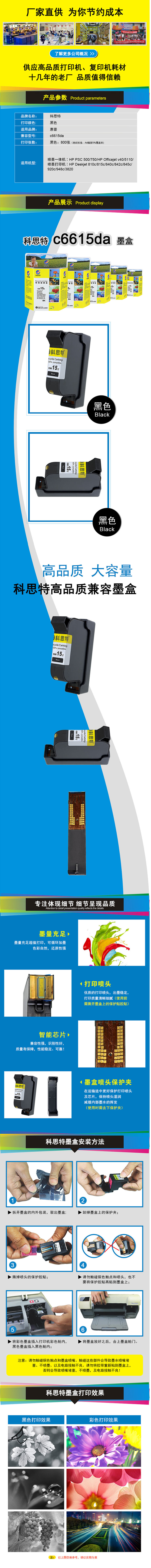 科思特 c6615d(15) BK 黑色墨盒 适用惠普PSC 500/750/Officejet v40/5110/Deskjet 810c/815c/840c/842c/845c/920c/948c/3820