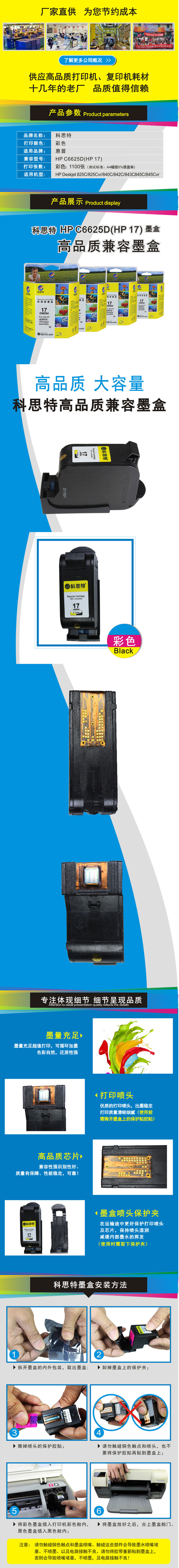 科思特 c6625d(17) COLOR 彩色墨盒 适用惠普Deskjet 825C/825CVR/840C/842C/843C/845C/845CVR