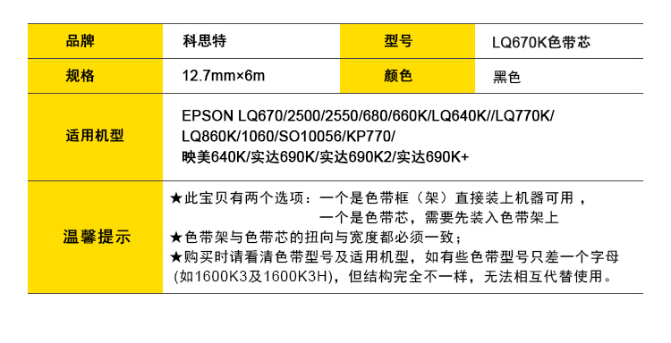商品名称:科思特 LQ670/2500/2550色带架 适用爱普生LQ670/2500/2550/680/660K/LQ640K//LQ770K 黑色